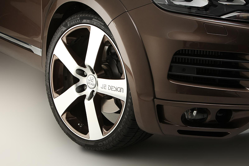 Мастерами ателье JE Design была установлена новая решетка радиатора, передний спойлер, широкие колесные арки спереди и сзади, спойлер на крышу и накладка на заднюю дверь. Всё это стоит для европейского клиента приблизительно 5000 евро. Все элементы обвеса выполнены из прочного полиуретана. Новые дополнительные фары дневного освещения придают Туарегу индивидуальность.