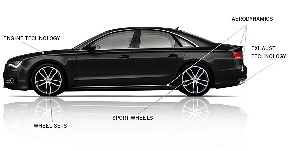 Заводской вариант турбодизельного двигателя AUDI A8 обладает мощностью 350 л.с. и максимальным крутящим моментом 800 Нм. Тем, кому и эта мощность покажется недостаточной, на помощь приходит фирма Abt, специализирующаяся на тюнинге автомобилей класса «люкс». Всего за 3800 евро (цена в Европе) мощность дизельного мотора повышается до 385 л.с. а крутящий момент – до 880 Нм. Фирма Abt преобразила и внешний вид флагмана AUDI: тюнинг-комплект включает задний трехкомпонентный спойлер, переднюю юбку, новые боковые пороги и элегантные насадки выхлопной системы. Видоизменения придают AUDI AS8 не только спортивность, но и благородство.