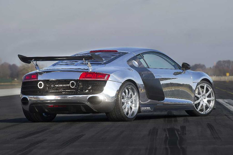 На автосалоне в Женеве был продемонстрирован Audi R8 Biturbo мощностью в 777 л.с. Максимальная скорость болида превышает отметку в 350 км/ч. В дополнение к этому с алюминиевого кузова спорткара был полностью удален лак, и поверхность металла была вручную отшлифована до блеска.