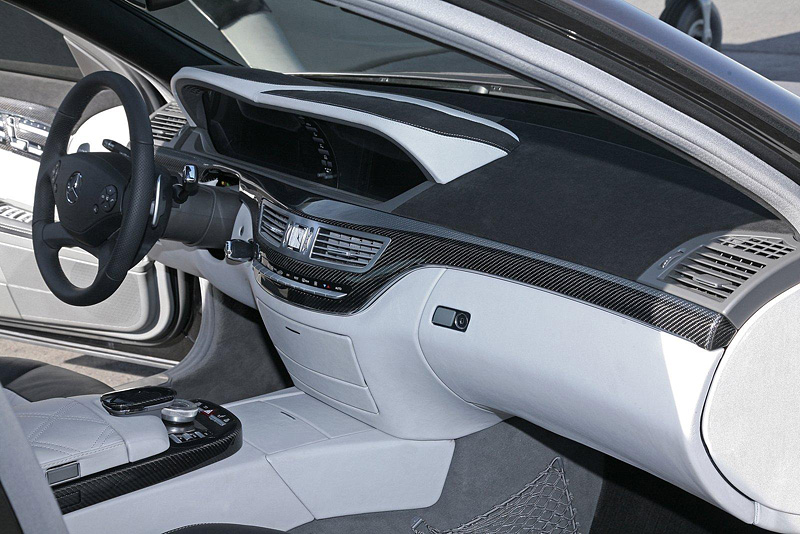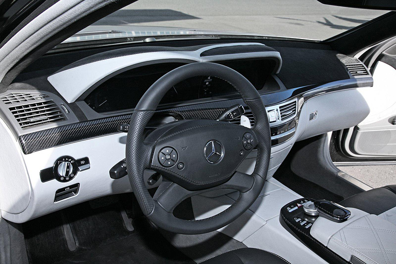 Интерьер автомобиля отделан двухцветной кожей, а потолок обшит черной алькантарой. Деревянная инкрустация стоек заменена карбоном. Шкала скорости на новом спидометре размечена до 360 км/ч. Обновленный Мерседес с нетерпением готовиться запищать по асфальту шинами и пуститься вперед, обгоняя своих соперников