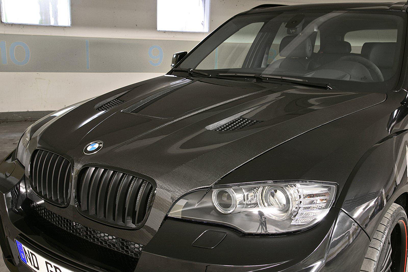 Вообще, внедорожник стал весить на 150 кг меньше базовой модели – BMW X6. Свою роль в похудании сыграла не только керамическая тормозная система, но и выхлопная система из титана, и даже карбоновые спортивные сиденья, отделанные кожей с тиснением «под карбон» - теперь мест в машине всего четыре. Кожей и карбоном инкрустированы панель приборов, спортивный руль, двери, и даже А, В и С-стойки. В новую центральную карбоновую консоль, простирающуюся от двух задних сидений до мест для водителя и пассажира, встроена мощная музыкально-развлекательная система. Новый спидометр размечен до максимальной отметки в 400 км/ч.