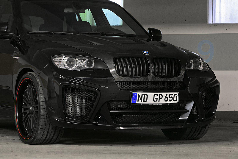 В названии присутствует слово «тайфун», и конечно не без оснований – ведь мощность внедорожника теперь составляет 900 л.с. Как Вы уже, наверное, догадались, стандартный двигатель 4,4 Л с двойным турбонаддувом V8 (мощность 555 л.с. и макс. вращающий момент 678 Нм) был заменен мастерами на пятилитровый V10, взятый с моделей М5/М6. Конечно данный двигатель был не просто переставлен, он был усовершенствован – объем был увеличен до 5,5 Л, были установлены кованые поршни фирмы MAHLE, семиподшипниковый коленчатый вал, более мощный шатун и мощные поршневые штифты. Мастерами был сделан чип-тюнинг блока управления мотором, установлены два турбокомпрессора ASA T1-316 и водяной интеркулер, выполненный техникой сложного алюминиевого литья, с прямым впускным патрубком, обеспечивающим спонтанную реакцию двигателя, и создающим гоночное ощущение во время быстрой езды. Теперь двигатель выдает 900 л.с. (662 кВт) при максимальном крутящем моменте в 870 Нм. Благодаря шестиступенчатой механической коробке передач G-Power (оригинальная автоматическая коробка и полный привод xDrive были заменены) «тайфун» Х6 разгоняется от нуля до 100 км/ч всего за 4,2 секунды, а менее чем за 13 секунд скорость достигает 200 км/ч. Максимальная скорость внедорожника - более 330 км/ч.