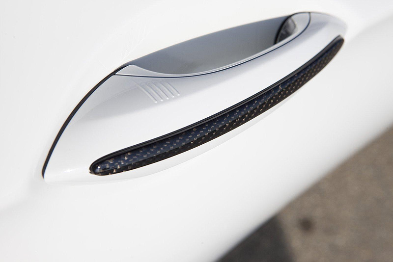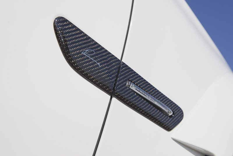 Для придания новизны и индивидуальности использовались карбоновые накладки на зеркала, решетку радиатора, дверные ручки, крышку багажника, А- B- и С-стойки и брызговики.