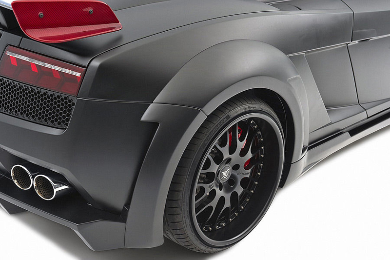 Действительно, карбона предостаточно, например, на модифицированной передней юбке. Новые крылья кузова спереди и расширенные пороги, придают спорткару известную долю агрессивности. К этому добавляется воздухозаборник на крыше, который при желании тоже делается из карбона. Сзади престиж авто был поднят с помощью нового диффузора и спойлера, больше напоминающего небольшое крыло. Этот элемент аэродинамического обвеса также можно заказать из карбона. Если и этого покажется мало, то можно покрыть капот слоем карбона. Колеса украшены 20-дюймовыми лакированными легкосплавными дисками. На передней оси покрышки размером 235/30, а на задней оси – 325/25.