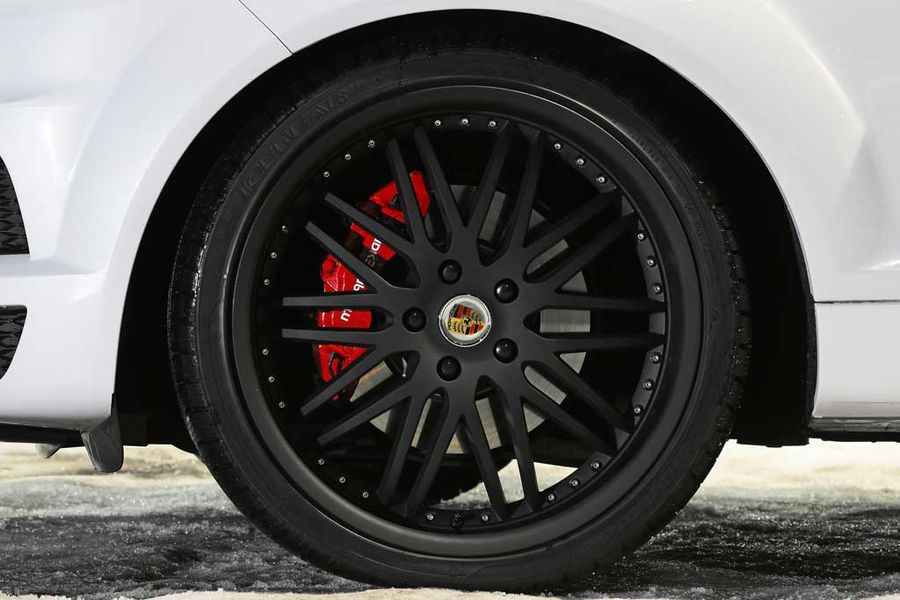 Теперь о легкосплавных дисках и покрышках – они обошлись в 2599 евро. Параметры дисков: 22 дюйма, ширина 9,5 дюймов, модель MRGT22. Покрышки: модель Hankook Icebear W300 размер 265/35-22.