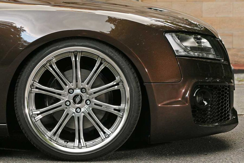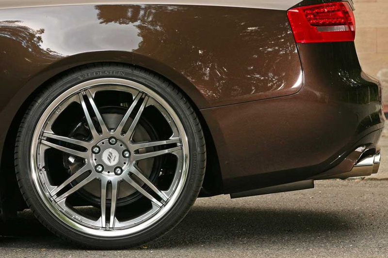 Превосходные спортивные качества обеспечивает регулируемая подвеска от KW вариант 2 (Inox Line). В качестве спортивных дисков выбраны либо Varianza T1S размером 9x20 либо Schwert SC1 размером 10,5x20 дюймов с анодированным ободом. Покрышки от Vredestein обеспечивают прекрасный контакт с дорожным полотном. Для установки таких покрышек кузовные работы на колесных арках не потребуются!