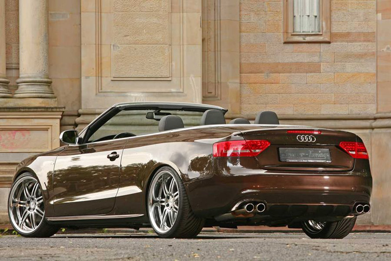 Немецкое ателье Senner Tuning AG предлагает всем владельцам кабриолетов Audi A5 и S5 разнообразные тюнинг-программы. Например, для А5 с двухлитровым TFSI-мотором существует возможность установки спортивных воздушных фильтров и оптимизации ПО блока управления двигателем – в результате мощность на выходе будет составлять максимум 275 л.с. а максимальный крутящий момент 430 Нм. В добавок можно установить так называемый Power Converter – преобразователь мощности, позволяющий ускорить реакцию мотора при нажатии на педаль газа – засчет этого машина будет разгоняться еще резвее. Тюнеры Senner предлагают новую выхлопную трубу, звук которой гарантирует, что у всех вокруг пойдут мурашки по коже. Четырехпатрубковый стальной спортивный глушитель сделан в мастерской Senner, диаметр каждого патрубка составляет 88 мм.
