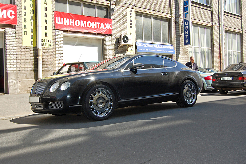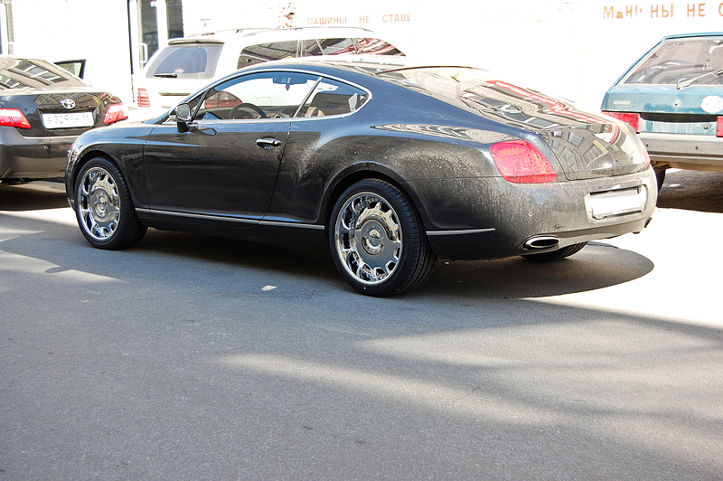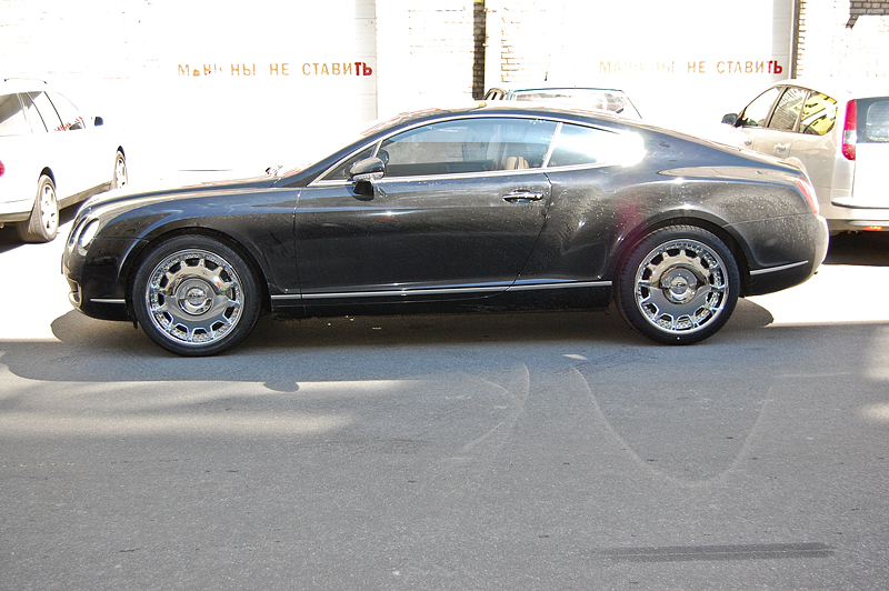 На Bentley Continental были поставлены эксклюзивные хромированные диски.