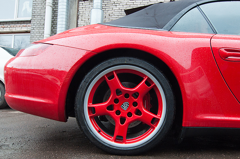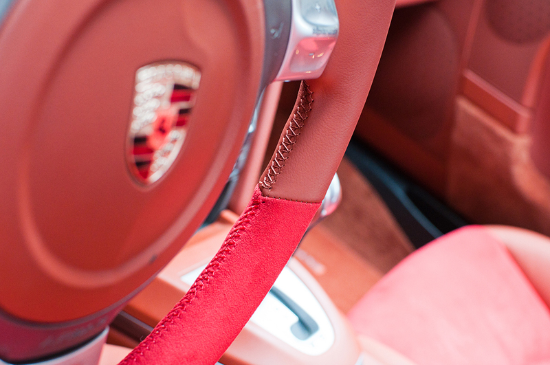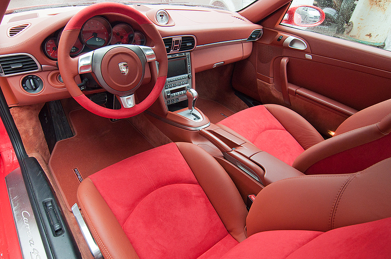 На автомобиле Porsche предпоследнего поколения был обновлен салон. В новую кожу были перешиты сиденья и руль. Сиденья сделали комбинированные - кожа + алькантара, которая была подобрана в цвет машины. На подголовниках были вышиты инициалы владельца. Кожа была выбрана из коллекции Porsche Nappa, немецкого производителя кож Hans Reinke. Также в автомобиль на пол положили новые коврики и обновили цвет дисков, теперь они красиво-красные и без следов использования на дорогах.