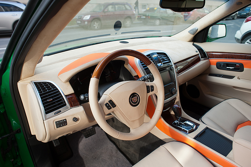 Было решено покрасить машину в зеленый цвет. Сделали 8 разных выкрасок, выбрали самый приятный оттенок зеленого, покрасили. Долго думали над цветом дисков, в итоге белый. Пока машина стояла в покраске начали делать салон. Изначально он было черный. Стал светлый с яркими деталями. Перешили сиденья, торпеду, дверные обшивки, потолок. Машина стала восприниматься совсем по другому. Приятнее, легче, мягче.