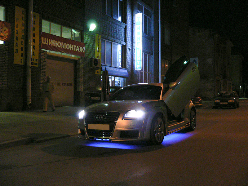 Ну и конечно синяя неоновая подсветка. Если Вы видели как ночью неопознаная машина перелетала через разведенные мосты - это была наша "UFO TT"