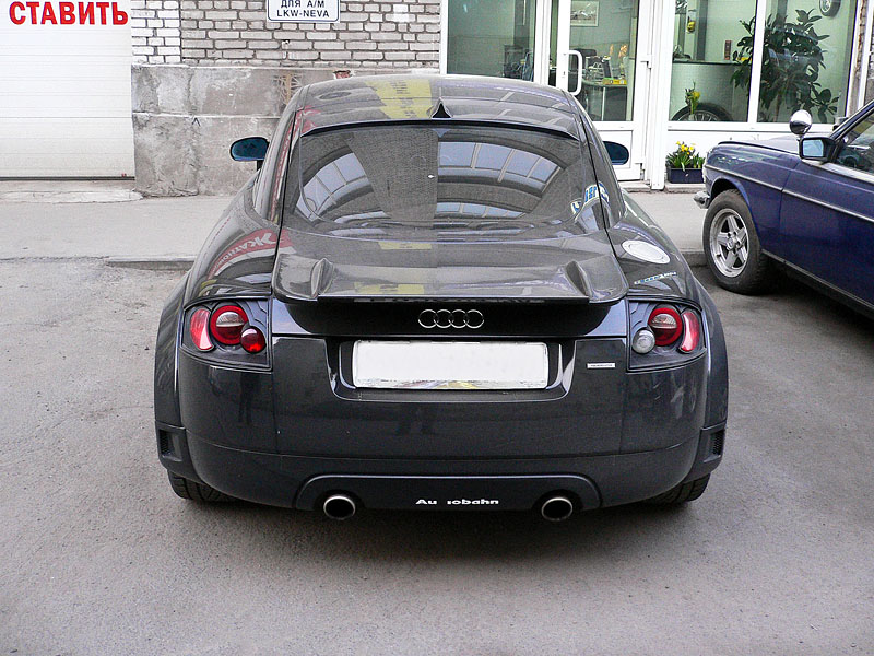 Задняя юбка установлена от модели TT 3.2 литра. Нельзя не заметить спойлер ABT на багажнике с карбоновой полоской и новые задние фонари, доработанные в нашей мастерской.