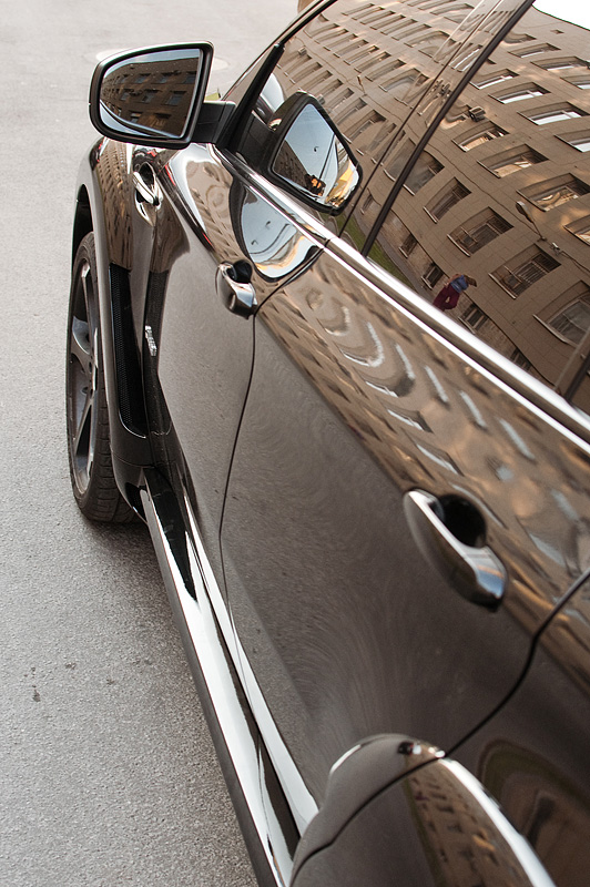 Комплект состоит из переднего бампера с 2-мя светодиодными габаритными фарами, передних крыльев, комплекта порогов, расширителей колесных арок для задней оси, накладка на задний бампер (с 2-мя вырезами для патрубков глушителя, расположенными в центре), спойлера крышки багажника (большой), спойлер крыши(поверх заднего стекла), спортивный глушитель с 2-мя патрубками, диаметром 120 мм., расположенными в центре и конечно-же фирменные шильдики Hamann спереди и сзади и небольшие наклейки на специальных местах. Все элементы были подогнаны покрашены и установлены за несколько дней квалифицированными мастерами станции профессионального тюнинга LKW-Neva.