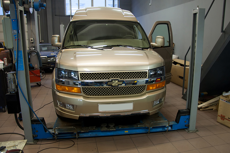 На автомобиле Chevrolet Express, который уже был глобально модернизирован московской фирмой DEPP, был изменен внешний обвес и проведены работы по устранению недоделок в салоне.