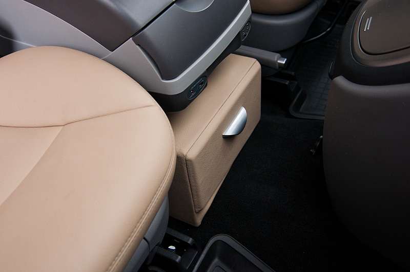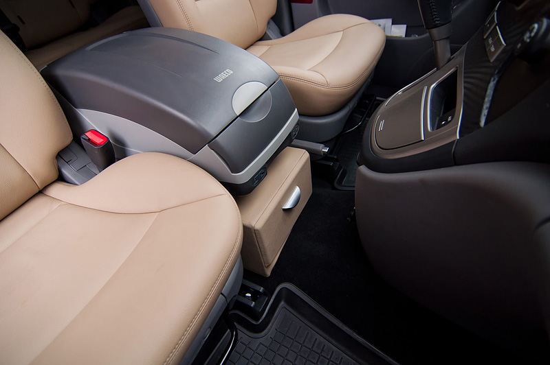 В микроавтобус Hyundai H1 (Starex) был установлен небольшой термоэлектрический автохолодильник WAECO. Теперь, каким бы жарким не было наступающее лето, у хозяина этого минивэна всегда под рукой будет охлажденная бутылочка воды, а у пассажира - баночка прохладного хайнекена. Для облегчения доступа, в качестве подставки под холодильник по эскизам заказчика был спроектирован и изготовлен подиум - ящик. Благодаря специальным "рельсам" он может открываться и, что немаловажно, закрываться при любом положении автомобиля. Даже во время движения.