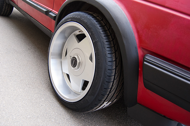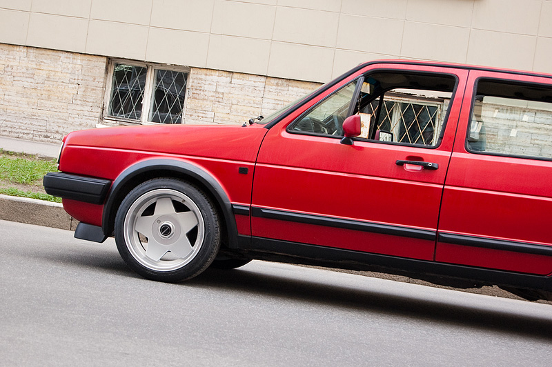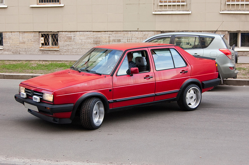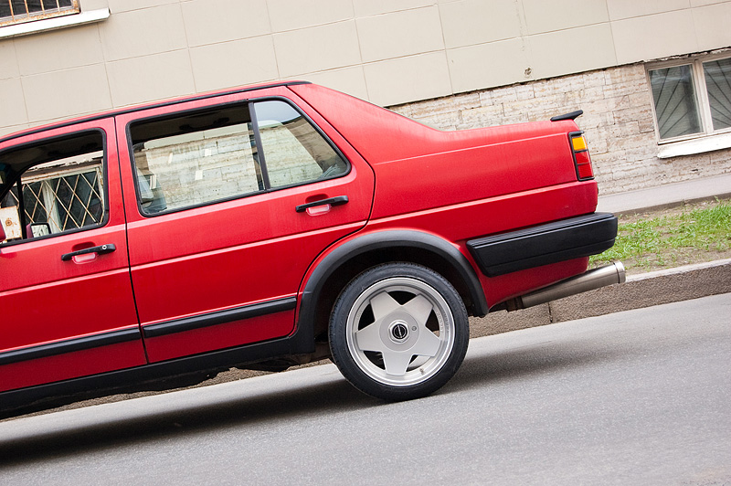 На VW Jetta поставлены диски Borbet Design A. Простая звезда и большая полка - этот дизайн хорошо знаком всем гольфоводам, это абсолютная классика! Такие диски выпускают с 1990го года, и они до сих пор продолжают пользоваться популярностью в рядах любителей классических фолькцвагенов.