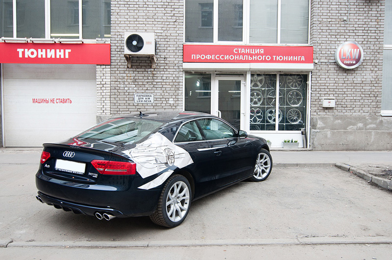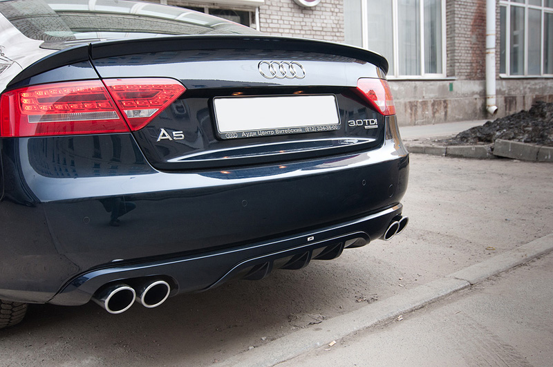 На годовалую Audi A5 3.0 TDI были установлены новые диски ABT BR 18", выхлоп ABT, задняя юбка ABT и спойлер этой же фирмы. Диски - 40% внешнего вида машины. ABT - общепризнанный лидер по переделке AUDI. Диски ABT - пожалуй лучшее сегодня предложение на рынке!