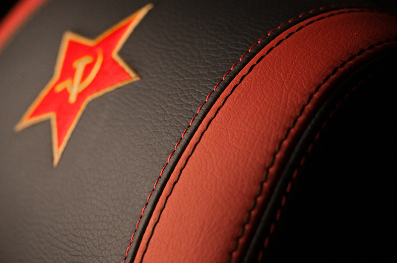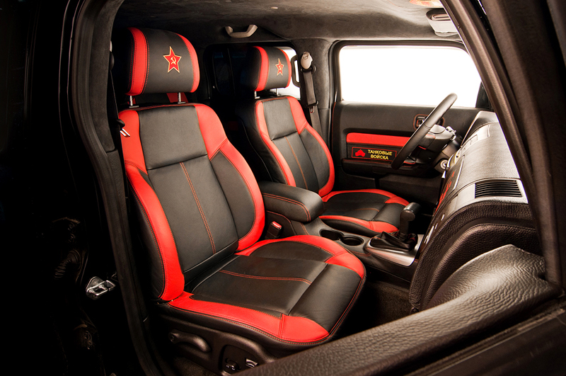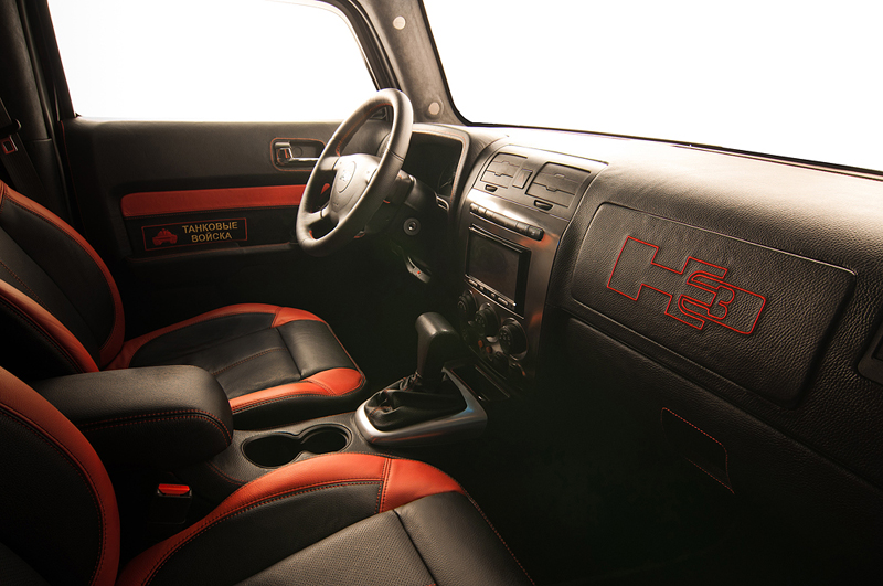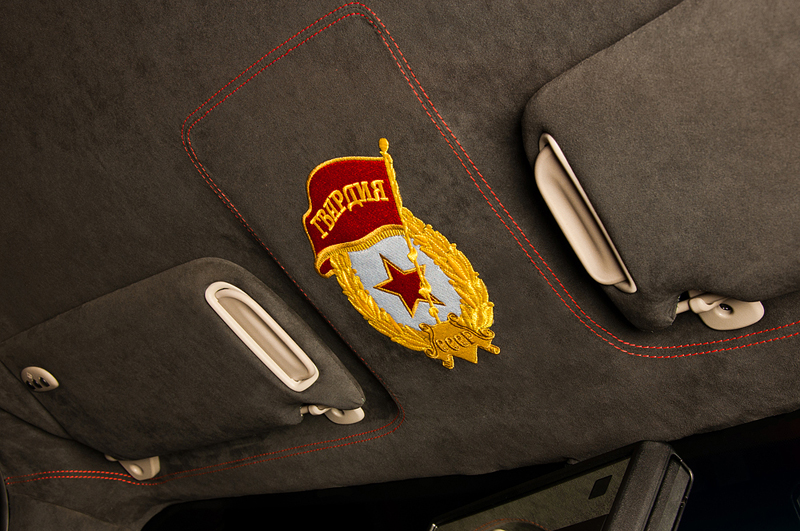 На потолке, дверях, подголовниках, заднем диване были вышиты звезды, герб гвардии, эмблема H3 и стилизованные военные нашивки.