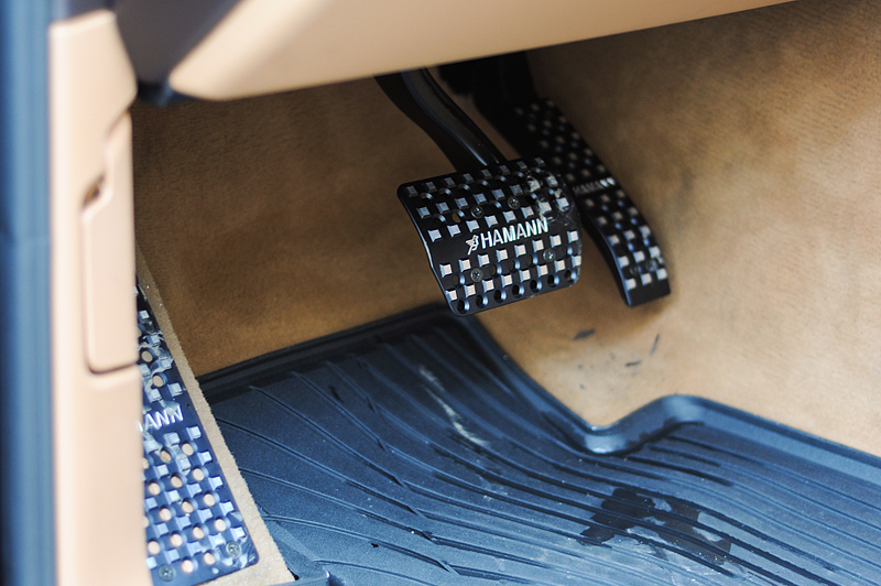 Также на автомобиль была установлена выхлопная система Hamann, накладки на педали и колесные проставки.