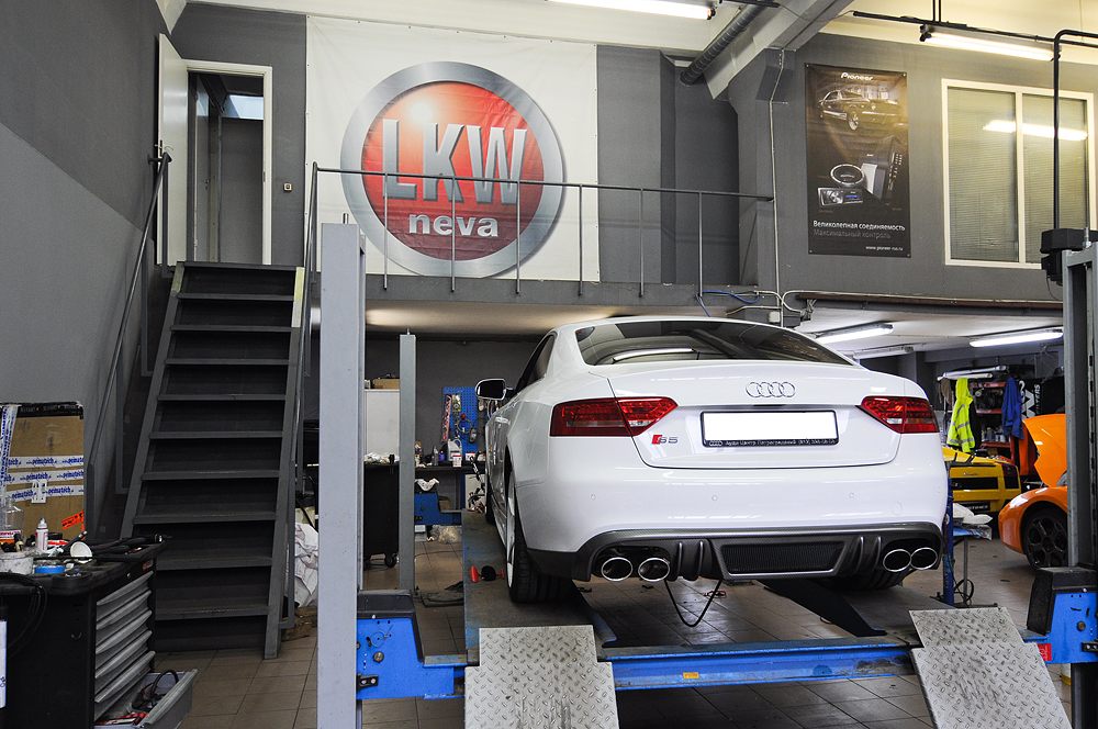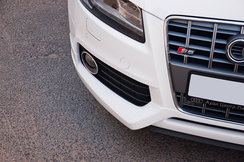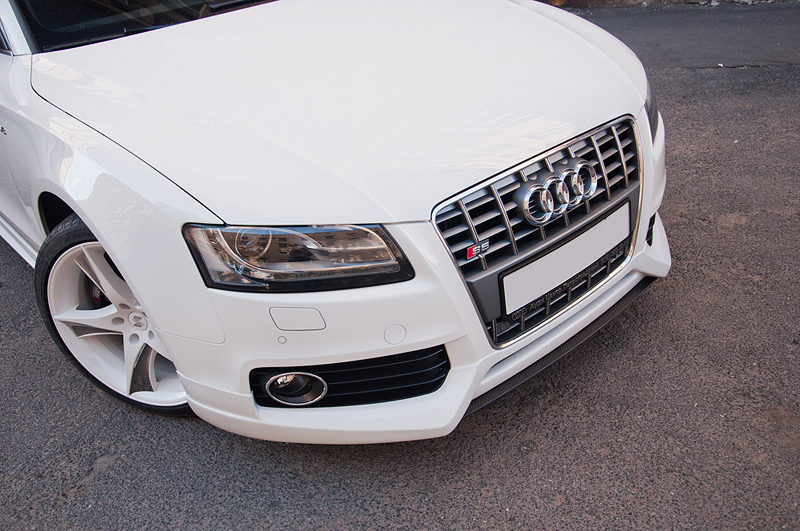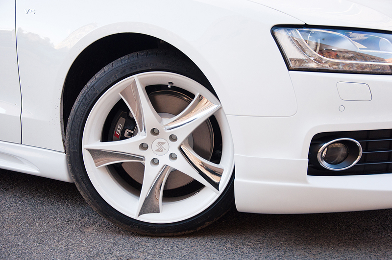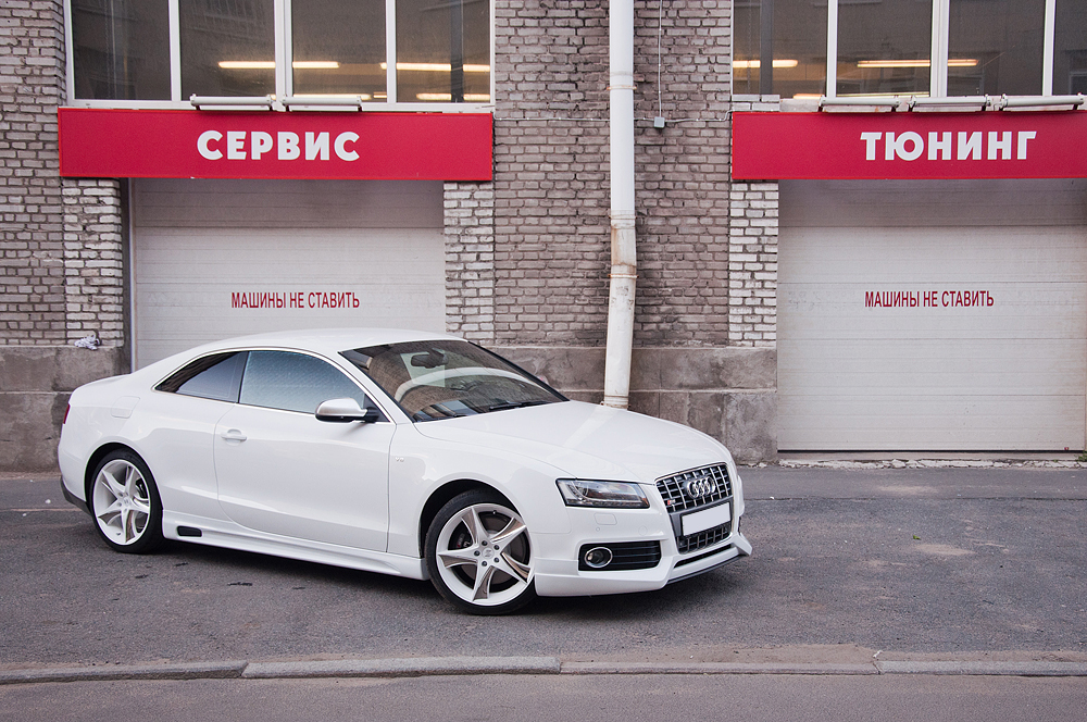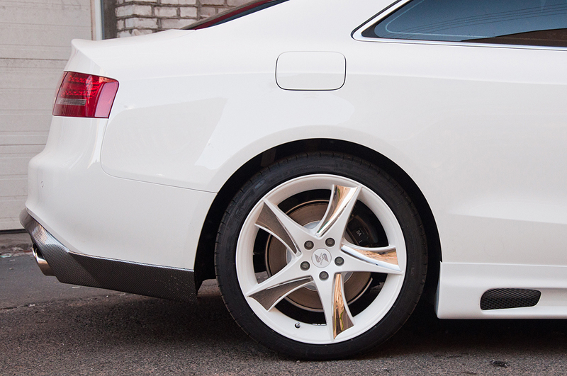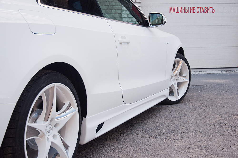 На новенькую Аudi S5 был установлен аэродинамический обвес Rieger и белые диски Etabeta Jofiel X-Ceramic 19x8.5".