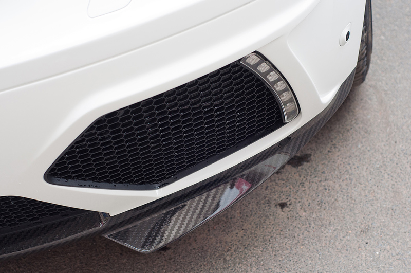 - передний бампер с LED(фонарями дневного света) и вставкой из карбона;