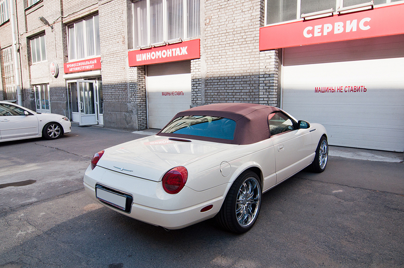 Ford Thunderbird одиннадцатого поколения был покрашен в светло-молочный цвет, были изготовлены задние расширители арок, настроена музыка.