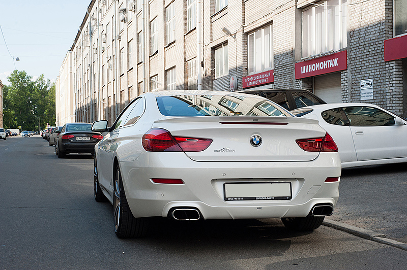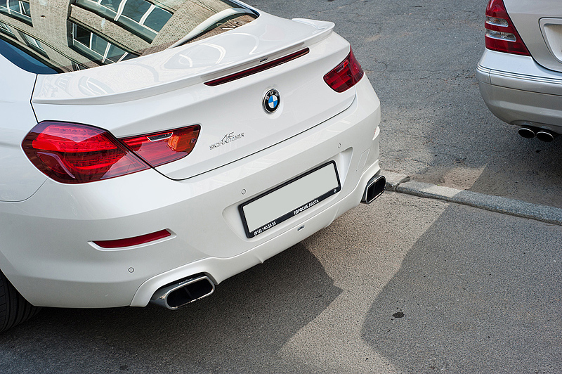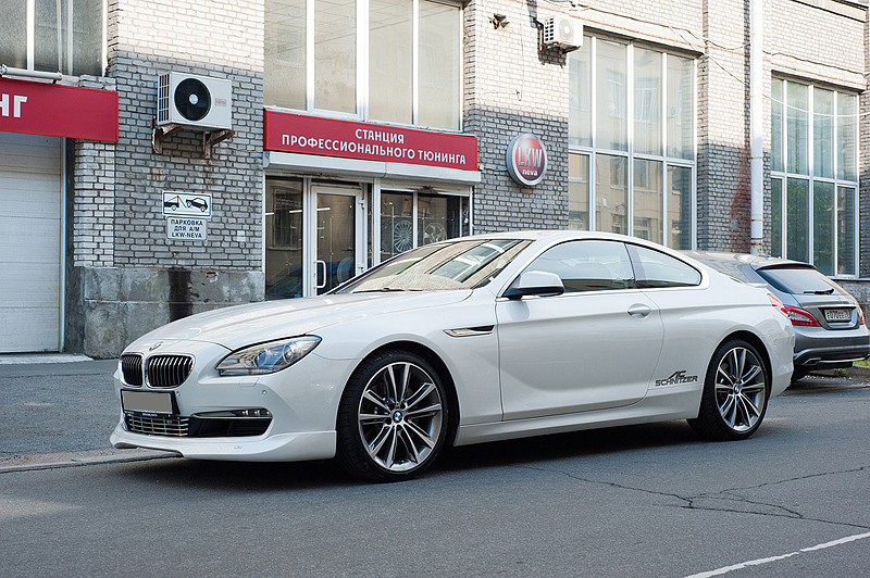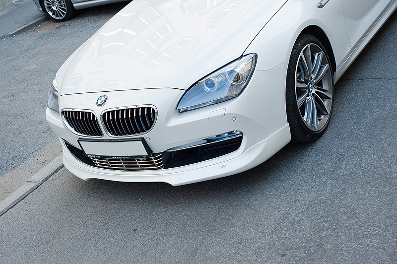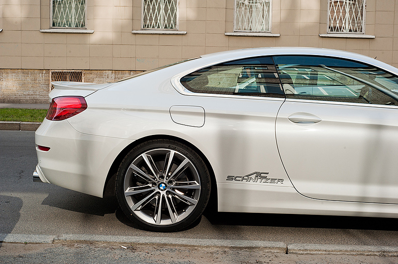 Для новой BMW 6er F14 купе был привезен, покрашен и установлен аэродинамический обвес фирмы AC-Schnitzer. Он состоит из передней юбки, решетки над юбкой, задней юбки, задней части выхлопной системы и спойлера на крышку багажника. В салон установлены накладки на педали и фирменные коврики. На бока были наклеены оригинальные наклейки AC-Schnitzer.