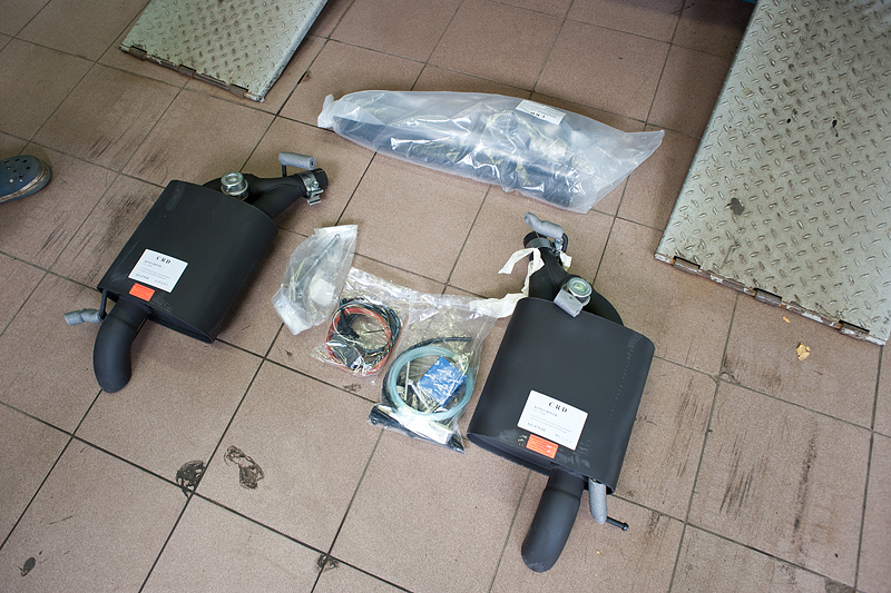На Range Rover 5.0 superchargered 2013 привезли и установили выхлопную системы Startech с регулировкой громкости. Выхлоп состоит из задних банок с клапанами и средней части глушителя. Когда шайба КПП в режиме "D" глушитель работает в тихом режиме, если переключить в "S" - открываются клапаны и звук становится заметно громче с басовитее.