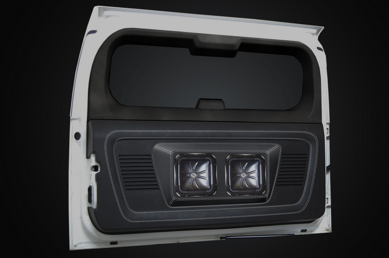 Салон на представленных вариантах полностью обновлен: на потолке и стайках черная алькантара, торпедо, центральная консоль, все пластиковые детали и сиденья перетянуты автомобильной черной кожей. Отстрочка по всему салону сделана стального цвета. Багажник, новые подиумы для сабвуфероф и задняя дверь также предложено перетянуть кожей.