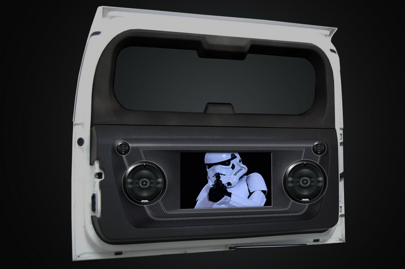 Проект интерьера белоснежного Hummer было решено создать в стиле киноэпопеи "Звездные войны". Идея заключалась в том, что снаружи автомобиль стал практически полностью белым, за исключением редких деталей. Брутальная внешность и белый цвет напомнили о штурмовиках - героях из фильма, которые носили полностью белые доспехи вместе с белым шлемом, однако все внутри у них было черное, ведь герои отрицательные. Поэтому после белой внешности, решили предложить черный салон, но с космическими нотками.