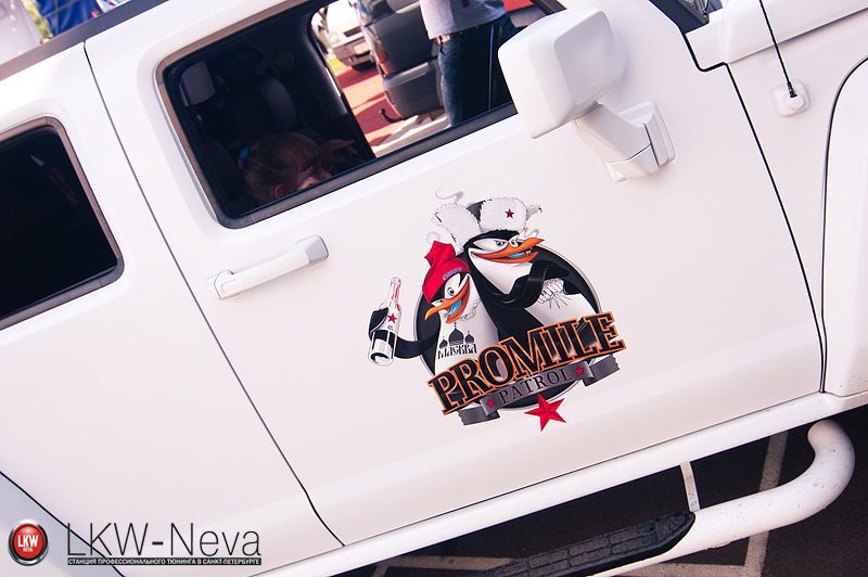 на автомобиль были установлена небольшие расширители арок, брызговики, пороги, передний кенгурятник, лебедка, новые колёсные диски XD Series XD 775 18" с злой резиной Discoverer Cooper SST. Все внешние элементы были покрашены в белый матовый цвет. Было предложено несколько вариантов виниловых наклеек на автомобиль.
