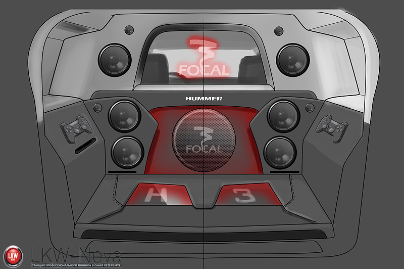 Hummer H3 - обычный американский автомобиль. Его салон не отличался качеством, стандартная музыка тоже не радовала. Было принято решение перешить салон и добавить немного мультимедиа компонентов.